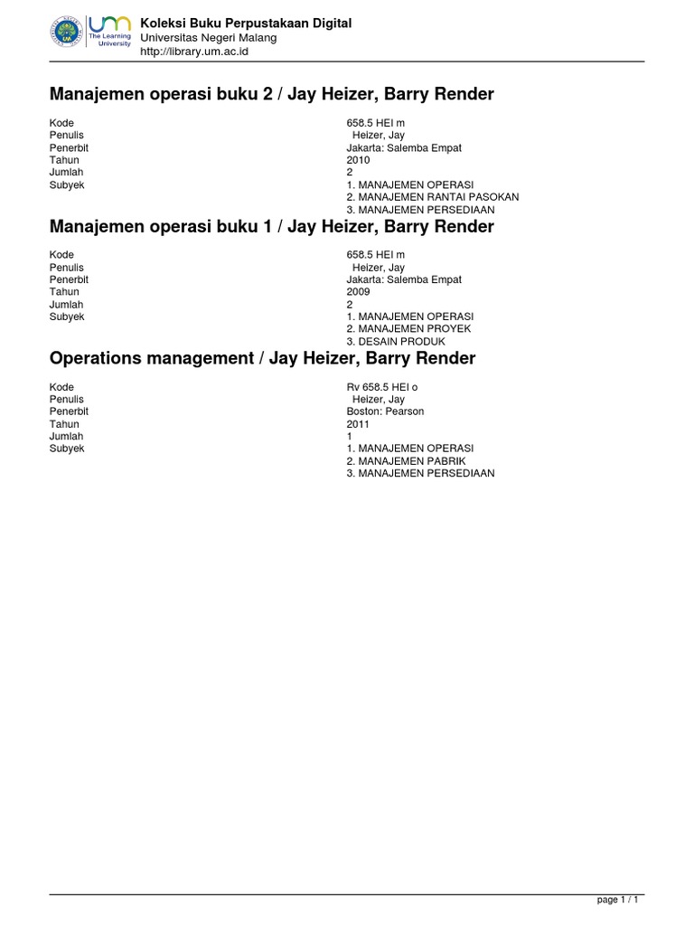 Check spelling or type a new query. Manajemen operasi jay heizer barry render pdf. Maybe you would like to learn more about one of these? We did not find results for:
